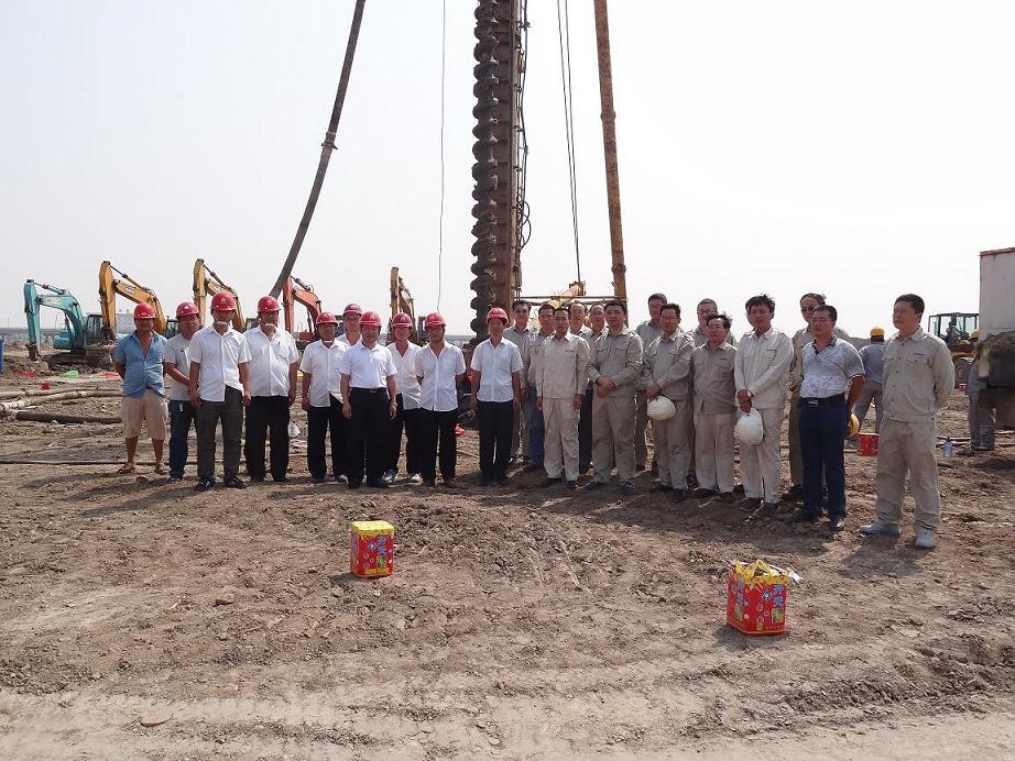 各位領(lǐng)導(dǎo)在樁基施工現(xiàn)場(chǎng)合影留念