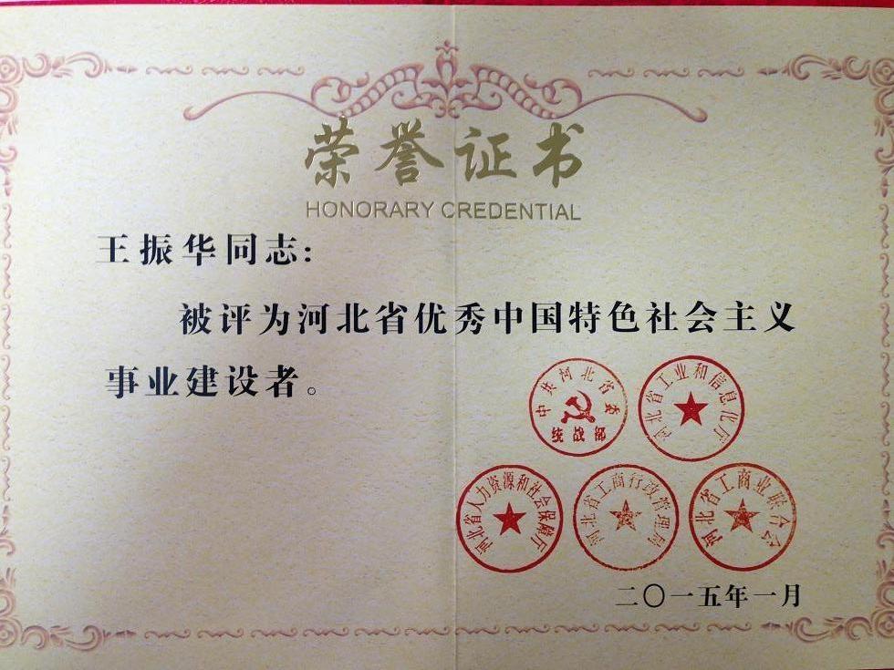 1月4日,第五屆河北省優(yōu)秀中國(guó)特色社會(huì)主義事業(yè)建設(shè)者表彰大會(huì)在石家莊召開,包括集團(tuán)公司董事長(zhǎng)王振華同志在內(nèi)的48名非公有制經(jīng)濟(jì)人士和其他社會(huì)階層人士獲得了“優(yōu)秀中國(guó)特色社會(huì)主義事業(yè)建設(shè)者”榮譽(yù)稱號(hào)。