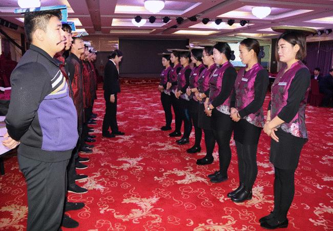 餐飲服務業(yè)是社會文明的窗口,餐飲業(yè)的服務質量是酒店日常管理的中心工作。全體員工都要有質量意識,管理人員更要樹立服務質量觀念。黃驊華悅凱旋大酒店為了提檔升級,打造精品,以提升服務質量為著點,將酒店培訓工作做扎實、做到實處,近日組織開展了一系列培訓工作: