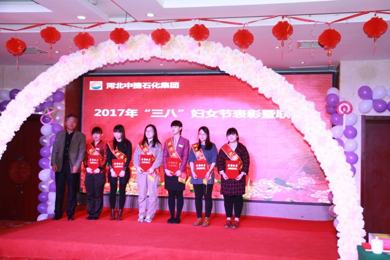 集團(tuán)工會(huì)主席趙愛華宣讀了河北中捷石化集團(tuán)2017年“三八”婦女節(jié)“先進(jìn)女職工”、“ 道德模范標(biāo)兵”、“ 優(yōu)秀女工組長”表彰決定,集團(tuán)公司黨委書記、副總經(jīng)理劉國新,工會(huì)主席趙愛華,紀(jì)委書記朱振江和新啟元公司工會(huì)主席劉立新為獲得表彰的17名先進(jìn)女工進(jìn)行了頒獎(jiǎng)。新啟元公司朱雪梅作為先進(jìn)代表進(jìn)行了獲獎(jiǎng)發(fā)言。