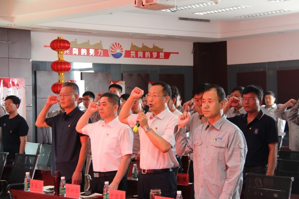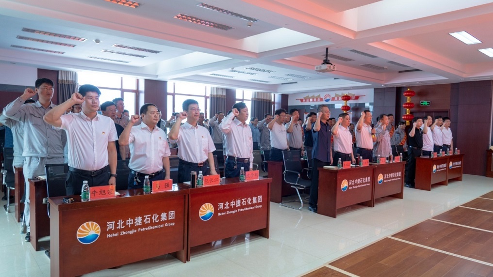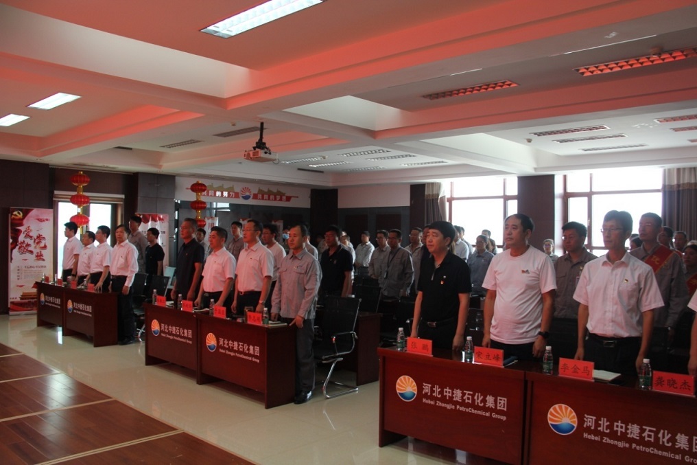 集團(tuán)黨委書記于國臣同志帶領(lǐng)全體參會(huì)人員共同重溫入黨誓詞,鏗鏘有力的宣誓聲縈繞在會(huì)場的每一個(gè)角落,讓中捷石化的全體黨員更加堅(jiān)定了“不忘初心、牢記使命”的共產(chǎn)黨人本色。