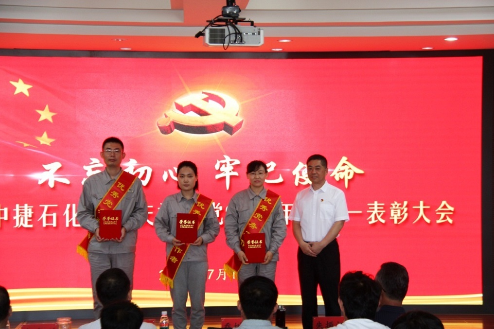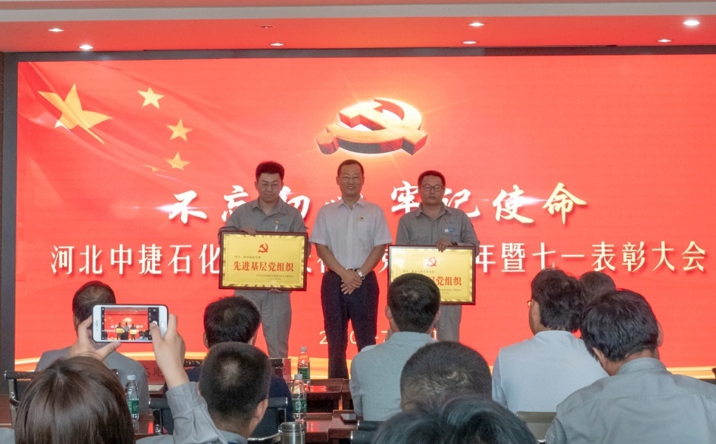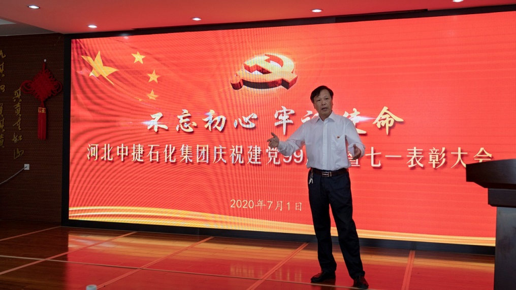 集團(tuán)公司訊(通訊員 朱鑫林)為熱烈慶祝和紀(jì)念中國共產(chǎn)黨成立99周年,表彰一批在黨建和集團(tuán)事業(yè)發(fā)展建設(shè)中涌現(xiàn)出來的先進(jìn)基層黨組織、優(yōu)秀黨務(wù)工作者、優(yōu)秀共產(chǎn)黨員,勉勵(lì)廣大黨員不忘初心,牢記使命,繼承和發(fā)揚(yáng)黨的優(yōu)良傳統(tǒng),7月1日,河北中捷石化集團(tuán)黨委組織召開了慶祝建黨99周年暨“七一”表彰大會(huì)。原中捷企業(yè)黨工委書記沈?qū)W明同志,集團(tuán)黨委書記于國臣同志,集團(tuán)總經(jīng)理喬樹華同志,以及各所屬黨支部書記,各所屬單位董事長、總經(jīng)理,2019-2020年度先進(jìn)基層黨組織代表、優(yōu)秀黨務(wù)工作者、優(yōu)秀共產(chǎn)黨員,各支部黨員代表共計(jì)70余人參加了此次活動(dòng)。