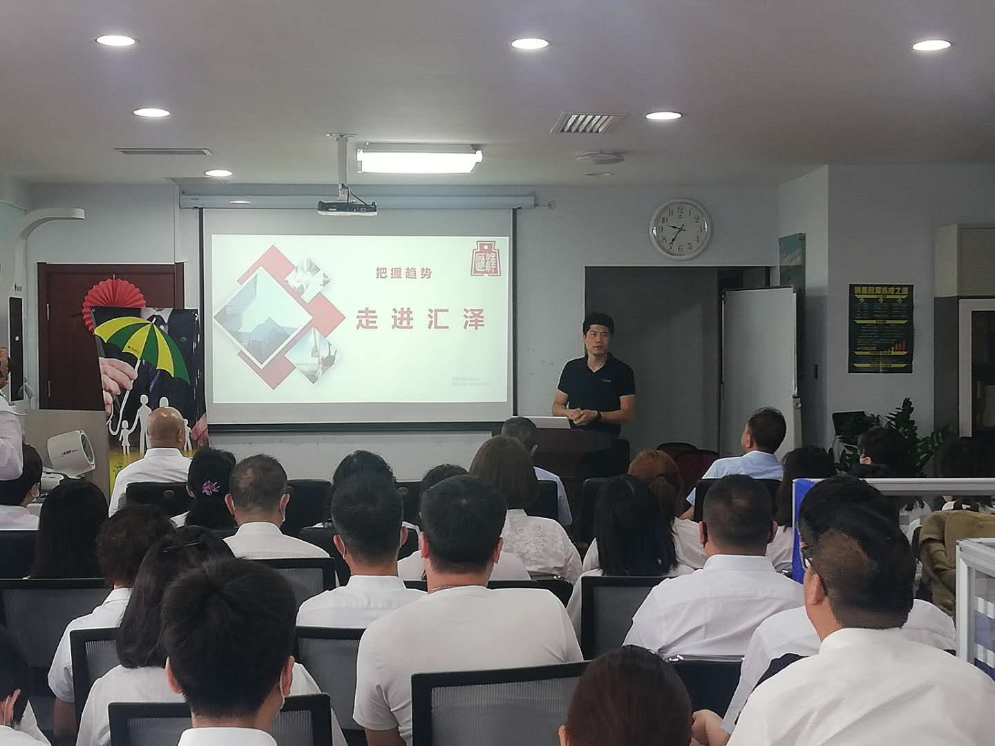 隨后,??偼ㄟ^PPT宣講的方式為天津分公司進行加油打氣。宣講內容中,??偸紫葟膮R澤保險公司的發(fā)展史講起,到后面介紹的匯澤保險七大優(yōu)勢(強大的股東、雄厚的資本、一流的團隊、創(chuàng)新的模式、優(yōu)越的制度、精良的產品、廣覆的網絡)及匯澤保險取得的成績,再到最后的升華——對集團公司的介紹。在聽取了??偟男v后,天津分公司的員工們斗志滿滿,尤其一線業(yè)務人員,更是提出“苦干、實干、加油干”的口號。