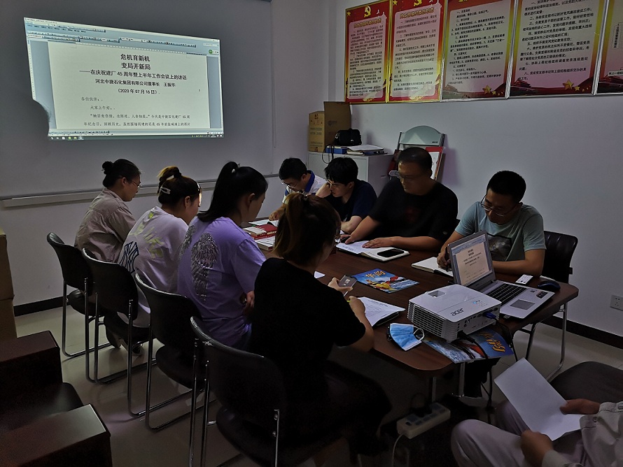 華辰公司訊(通訊員 李金玲)7月22日下午,華辰公司班長(zhǎng)以上管理人員在總經(jīng)理蔣富強(qiáng)的帶領(lǐng)下,集體觀看了建廠45周年宣傳視頻——《逐夢(mèng)路上鑄輝煌》,共同學(xué)習(xí)中捷石化發(fā)展史。