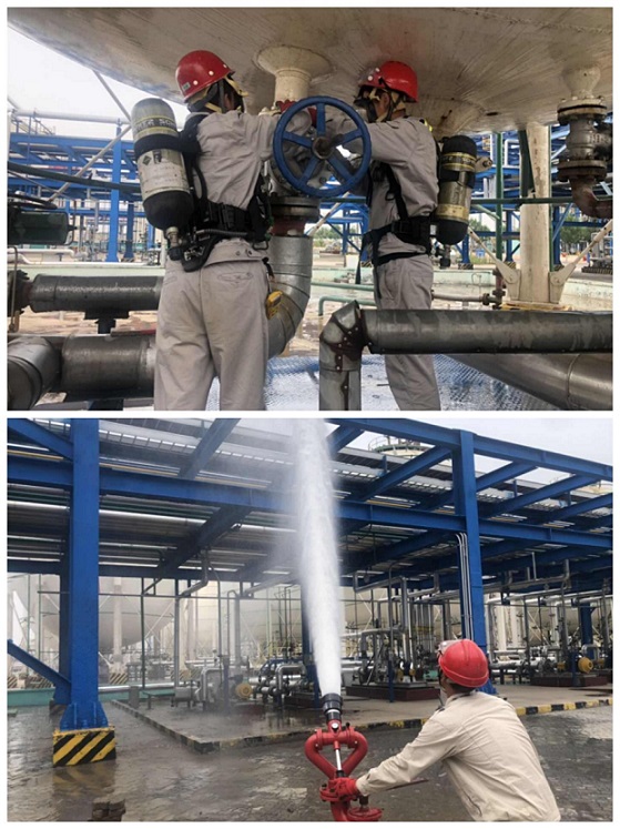 此次安全月演練以突擊形式展開,以重大危險源專項演練,模擬收發(fā)油品裝卸車冒油、著火,液化氣鶴管斷裂等事故處理,演練要求罐區(qū)、收發(fā)及后勤人員整體聯動,全面檢驗部門應急救援能力,強化全員應急水平,從而增強專業(yè)安全技能,筑牢安全根基。