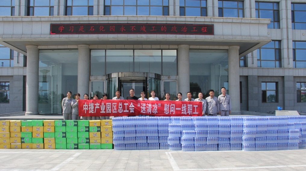 集團(tuán)公司訊 中捷產(chǎn)業(yè)園區(qū)總工會(huì)將“我為群眾辦實(shí)事”實(shí)踐活動(dòng)與推動(dòng)落實(shí)《安全生產(chǎn)法》、《防暑降溫措施管理辦法》等法律法規(guī)結(jié)合起來,聯(lián)手河北中捷石化集團(tuán)工會(huì),深入一線,送上酷暑里的清涼。7月20日上午,園區(qū)總工會(huì)領(lǐng)導(dǎo)一行來到集團(tuán)公司,向一線伙伴們送上誠摯的慰問。集團(tuán)公司黨委副書記、工會(huì)主席朱振江,新啟元公司工會(huì)主席張金甫,以及來自生產(chǎn)部門的10余名代表盛情接待。