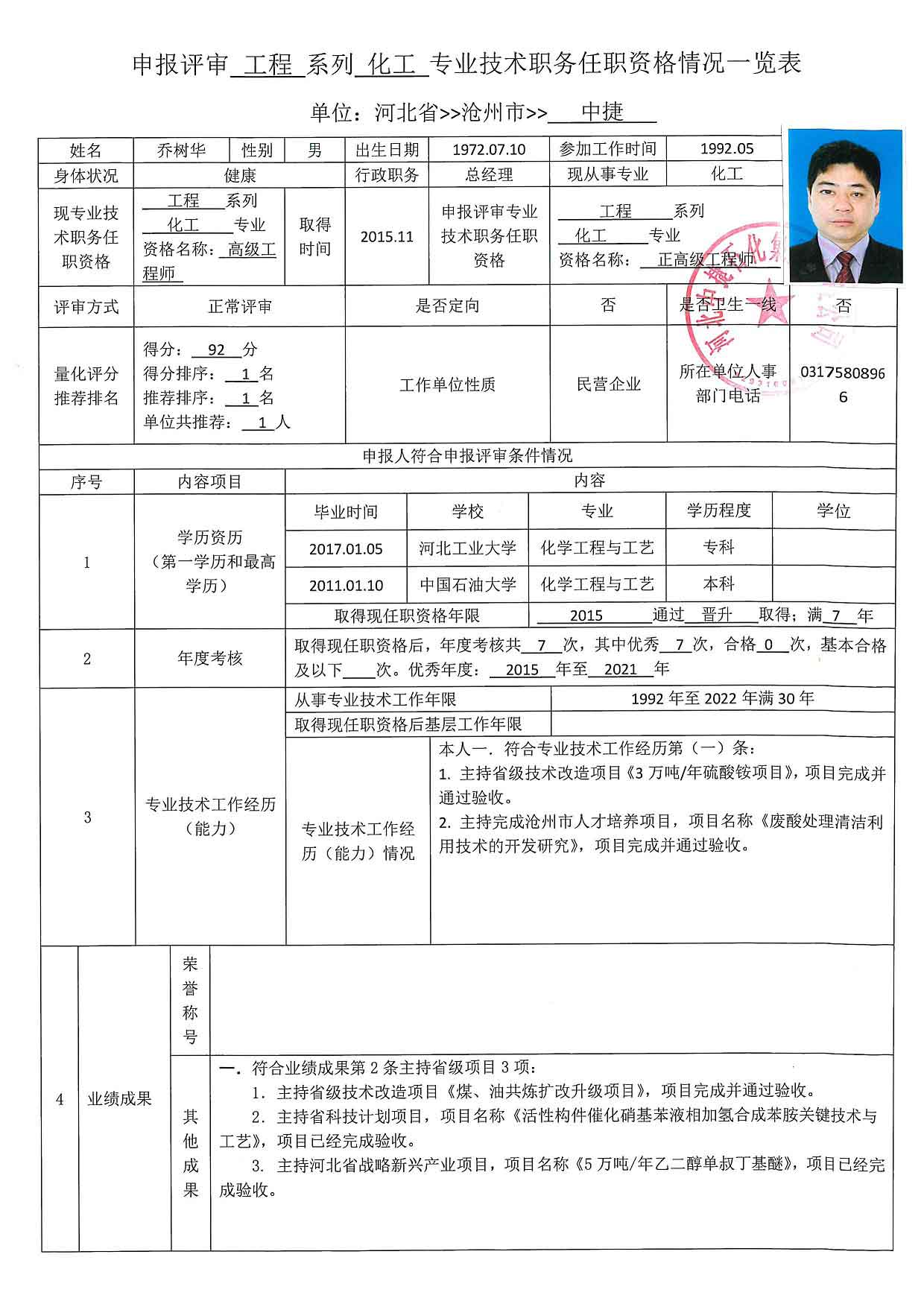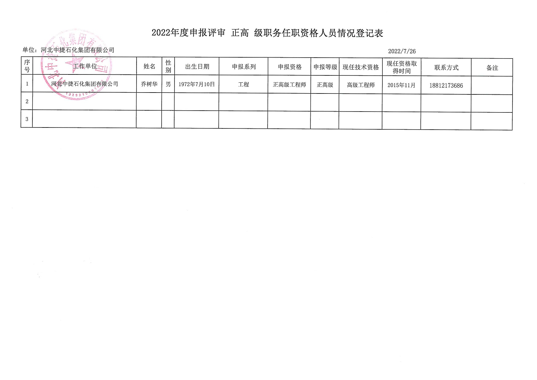 2022年河北中捷石化集團申報高級職稱人員信息公示