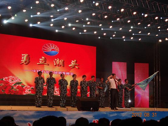 晚會(huì)特邀滄州電視臺(tái)著名主持人劉靜、康黎助陣。歌曲、情景劇、舞蹈、詩(shī)朗誦等節(jié)目形式多樣、異彩紛呈。此外,還邀請(qǐng)了空政歌舞團(tuán),全軍文藝匯演一等獎(jiǎng)獲得者——傅蓉,為大家?guī)?lái)《陽(yáng)光路上》、《祝?!穬墒赘枨?。各分公司員工身著色彩不同的統(tǒng)一服裝在臺(tái)下與演員互動(dòng),場(chǎng)面熱烈。集團(tuán)和分公司紛紛獻(xiàn)出了自己的拿手節(jié)目,自編自導(dǎo)的音樂(lè)快板《中捷石化在騰飛》描繪了中捷石化集團(tuán)這片和諧進(jìn)步的景致,煥發(fā)著勃勃生機(jī);為中捷石化集團(tuán)創(chuàng)作的詩(shī)歌——《蔚藍(lán)的暢想》歌頌了中捷石化人憑海臨風(fēng),躊躇滿志,演繹著富有詩(shī)情畫意的暢想;中捷石化集團(tuán)總經(jīng)理于國(guó)臣為剛剛加入中捷石化集團(tuán)的新員工授旗,河北新啟元能源技術(shù)開發(fā)股份有限公司常務(wù)副總經(jīng)理喬樹華帶領(lǐng)全體新員工宣誓,并歡迎年輕有為的兄弟姐妹們加盟中捷石化集團(tuán),走向新的工作崗位。