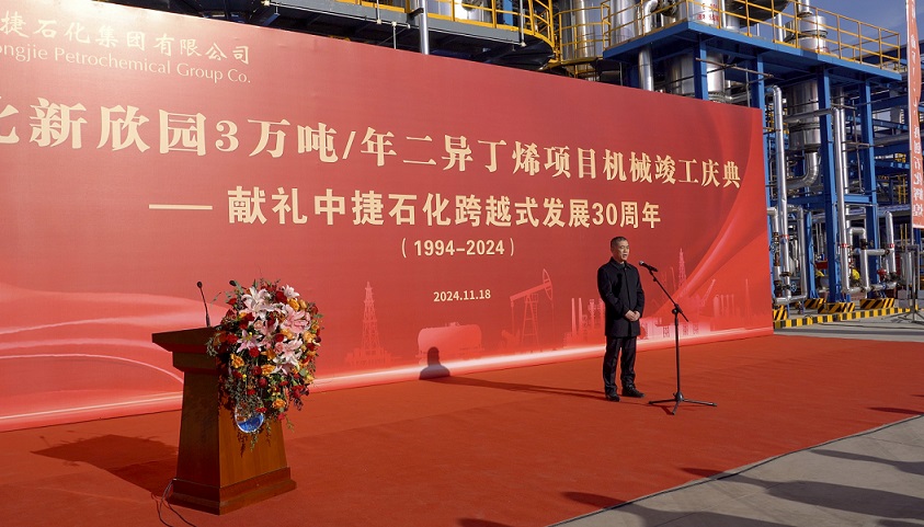 集團(tuán)公司訊 11月18日上午,河北中捷石化集團(tuán)組織舉辦“獻(xiàn)禮中捷石化跨越式發(fā)展30周年”——3萬噸/年二異丁烯項(xiàng)目機(jī)械竣工慶典。集團(tuán)董事長(zhǎng)王振華、集團(tuán)黨委書記于國(guó)臣、集團(tuán)總經(jīng)理喬樹華,以及集團(tuán)公司領(lǐng)導(dǎo),各所屬單位副總級(jí)以上管理人員、財(cái)務(wù)經(jīng)理、員工代表,參建方項(xiàng)目代表、工人代表等共計(jì)100余人參加?;顒?dòng)由集團(tuán)副總經(jīng)理張鵬主持。