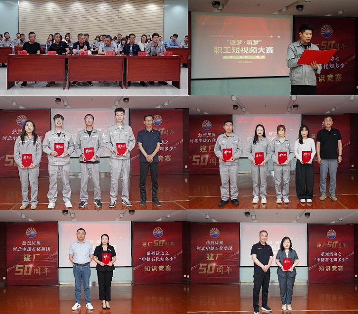 集團(tuán)公司訊 為熱烈慶祝建廠50周年,在系列活動(dòng)中傳承企業(yè)精神,激發(fā)全員學(xué)習(xí)熱情,助力持續(xù)穩(wěn)定創(chuàng)新發(fā)展,6月20日上午,集團(tuán)公司在新欣園公司中控室二樓會(huì)議室舉辦了“中捷石化知多少”知識(shí)競(jìng)賽暨“逐夢(mèng)·筑夢(mèng)”職工短視頻大賽頒獎(jiǎng)活動(dòng)。集團(tuán)公司總經(jīng)理喬樹(shù)華、副總經(jīng)理王猛、財(cái)務(wù)總監(jiān)宋立峰、總工程師李金馬、紀(jì)委書(shū)記朱振江、工會(huì)主席牛旭宗,各單位總經(jīng)理、員工代表及參賽職工共計(jì)80余人參加。