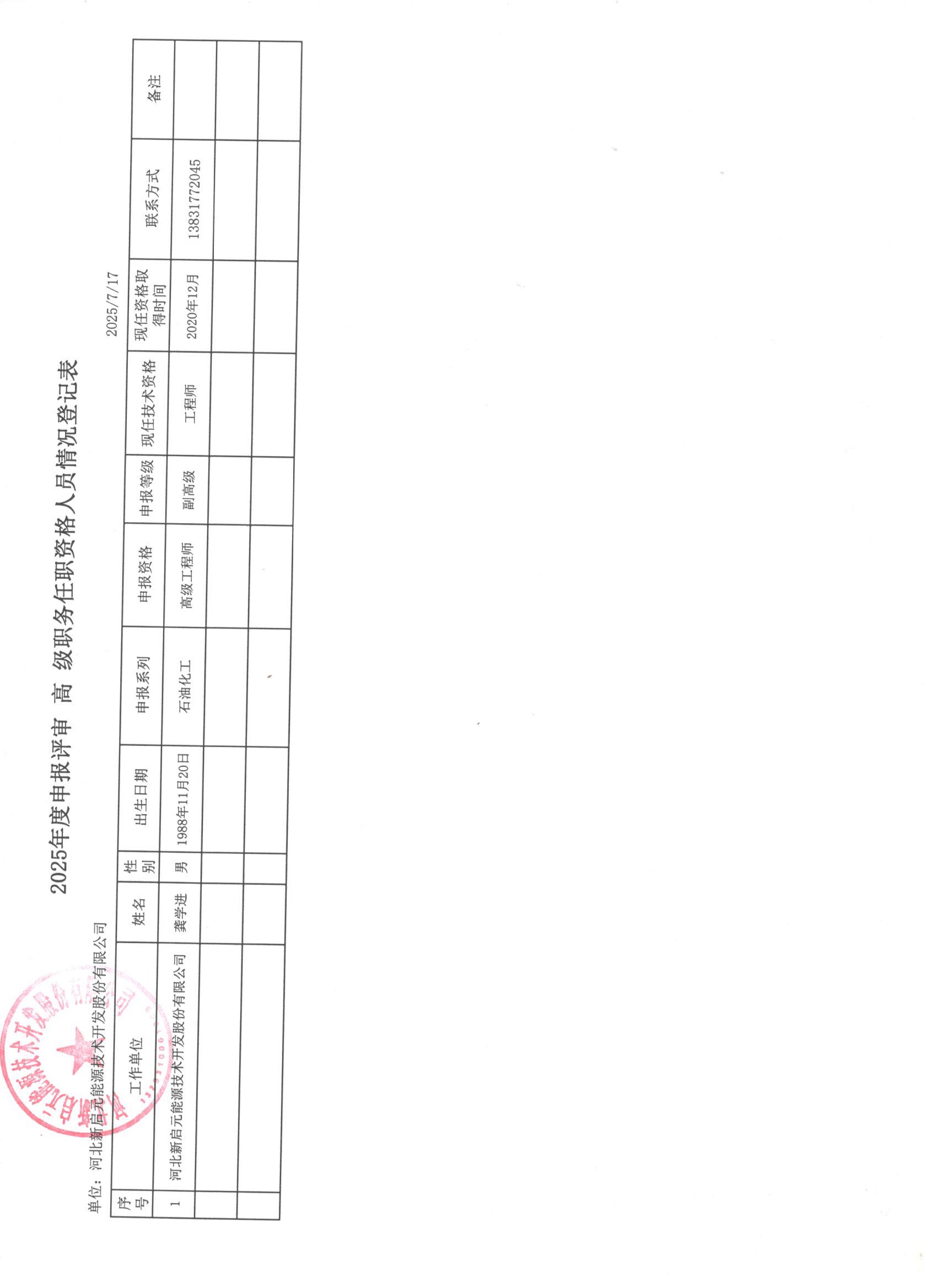2025年河北新啟元申報高級職稱人員信息公示