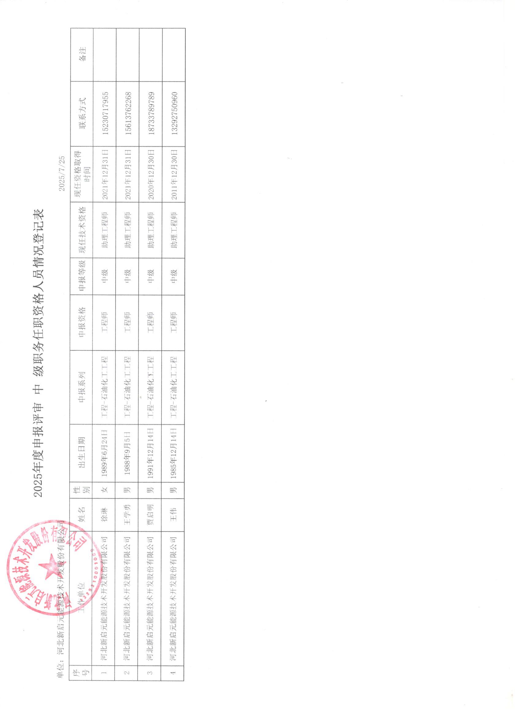 2025年河北新啟元申報(bào)中級(jí)職稱人員信息公示