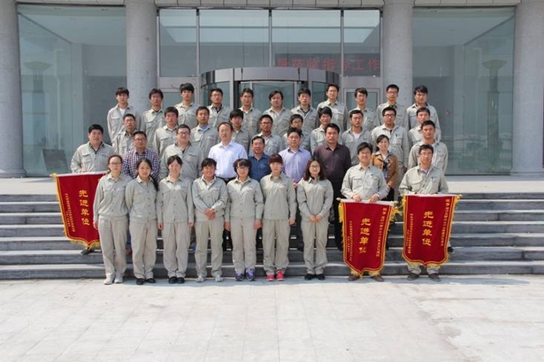 公司領(lǐng)導(dǎo)與獲獎人員在科研樓門前合影留念